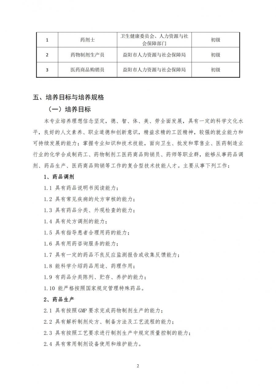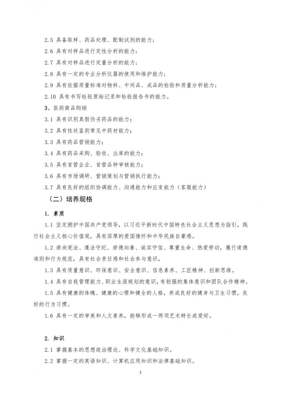 本专业培养理想信念坚定,德、智、体、美、劳全面发展,具有一定的科学文化水平,良好的人文素养、职业道德和创新意识,精益求精的工匠精神,较强的就业能力和可持续发展的能力;掌握专业知识和技术技能,面向卫生、批发和零售业、医药制造业行业的化学合成制药工、药物制剂工医药商品购销员、药师等职业群,能够从事药品调剂、药品生产、医药商品购销等工作的复合型技术技能人才。
