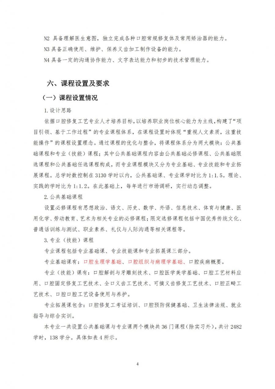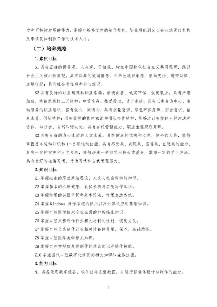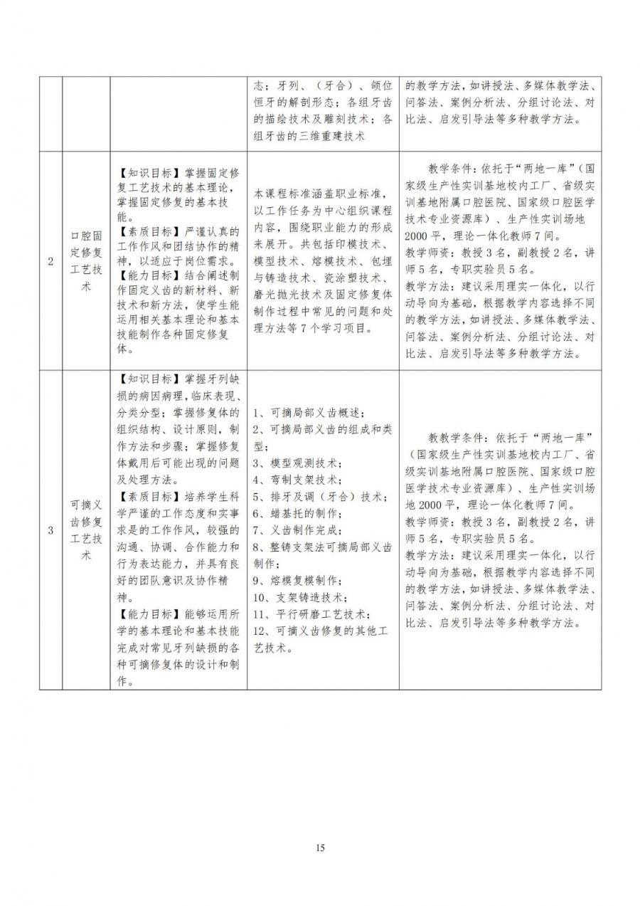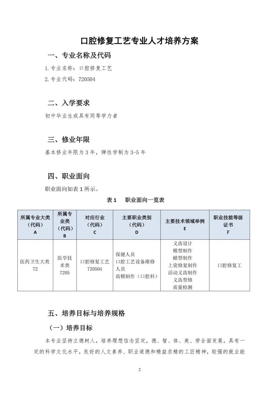 本专业坚持立德树人,培养理想信念坚定,德、智、体、美、劳全面发展,具有一定的科学文化水平,良好的人文素养、职业道德和精益求精的工匠精神,较强的就业能所属专业大类(代码)A所属专业类(代码)B对应行业(代码)C主要职业类别(代码)D主要技术领域举例E职业技能等级证书F医药卫生大类72医学技术类7205口腔修复工艺720504保健人员口腔工艺设备维修人员齿模制作(口腔科)义齿设计模型制作蜡型制作上瓷修复制作活动义齿制作义齿型修质量检测口腔修复工3力和可持续发展的能力,掌握口腔修复体的制作技能,毕业后能到义齿企业或医疗机构从事修复体制作工作的技术人才。