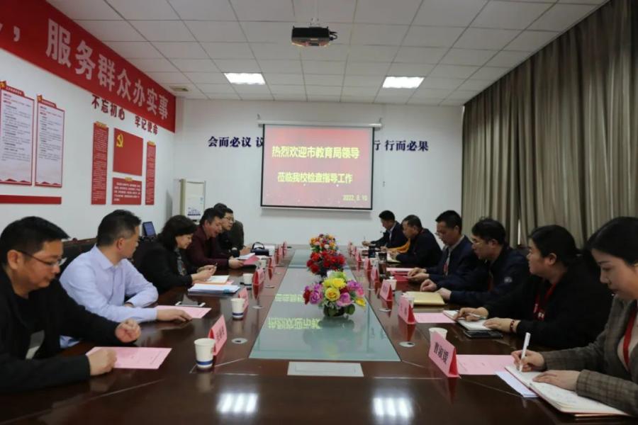 2022年3月10日,市教育局办学质量评估专家赵琼花、黄为明一行6人来必赢开展2021年度办学质量评价工作。学校理事长丁志强、校长郭正良、党支部书记赖青等校领导及全体中层干部参加。