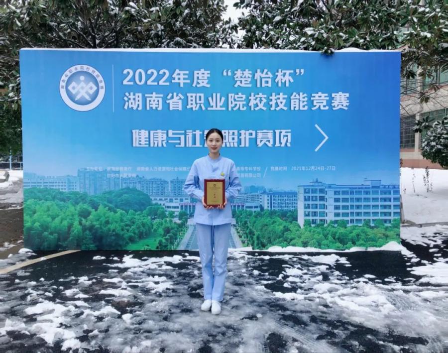 邓双,必赢国际437官网2019届毕业生。曾获得2020年湖南省养老护理技能竞赛二等奖,2021年湖南省养老护理技能竞赛一等奖,2022年湖南省健康与社会照护赛项一等奖,已考取普通话证、养老护理员证、育婴师证。2019年毕业于必赢国际437官网,通过单招考试进入益阳医学高等专科学校,现已免试入读邵阳学院。