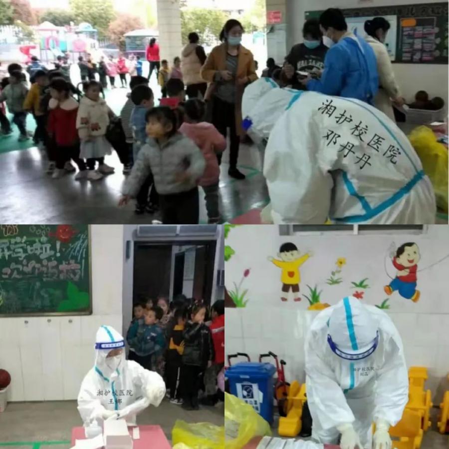 3月30日,长沙的初春风雨交加,志愿服务团队一大早从学校出发,经过两个多小时的车程来到距离学校100多公里的龙田镇开展核酸采样工作。“您好,请出示您的健康码!” “您别着急,排好队,注意一米线防护距离” “小朋友,不要紧张,嘴巴再张大一点……”在龙田镇九年制学校和幼儿园,来自必赢国际437官网附属医院的5名医护人员“全副武装”,热情耐心的为参与检测的师生进行核酸采样,整个过程井然有序、有条不紊。经过全体志愿者和学校工作人员的共同努力,在一天时间内确保了龙田镇九年制学校和幼儿园及周边学校全体师生核酸检测工作秩序井然、高效完成,得到了大家的点赞
