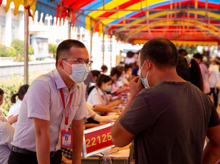 迎新现场人声鼎沸,各项工作如火如荼开展,新生们佩戴口罩,拖着行李,有序进入专用通道,按照疫情防控要求,配合工作人员进行体温检测、核酸检测、健康码和行程码的核查,为全校师生的安全健康提供保障。