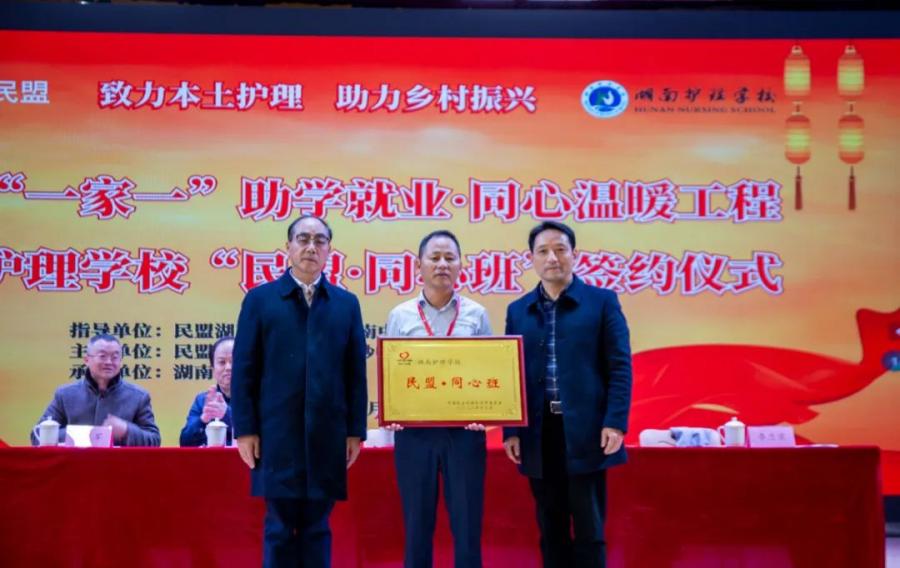 民盟长沙市委会、必赢国际437官网共同签署签订湖南“一家一”助学就业·同心温暖工程“民盟·同心班”协议书。