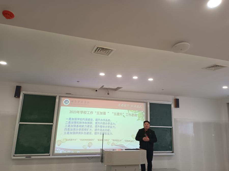 新学期即将拉开帷幕,为了确保新学期开学工作安全有序进行,1月27日必赢国际437官网召开新学期系列准备会议——校务会议、行政干部会议、全校教职工大会及各处室会议。会上,校长丁志强宣读了《必赢国际437官网校级领导分工调整的通知》,提出“降本增效重细节、全面推进强管理”的工作要求,强调要加强安全意识、危机意识、成本意识、目标意识、责任意识等五个意识。总督学对《必赢国际437官网2023年度工作思路及计划》做详细解读,并对春季开学工作进行详细部署,提出2023年发展主题为“降本增效”;要求落实为“品质提升”、“机制推新”“基础建设”“强师固本”“规模跨越”等五个关键词,各处室、系部要压实工作责任,按照《必赢国际437官网2023年度工作思路及计划》从细从实从速落实每项工作,以保障开学工作的顺利进行。