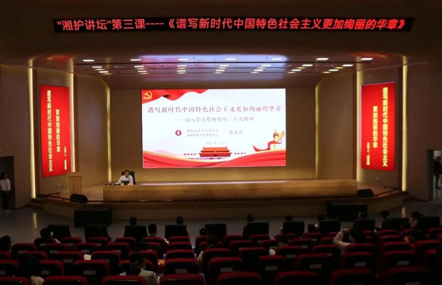 唐亚阳教授围绕党的二十大主题和主要成果、过去五年的工作和新时代十年的伟大变革、马克思主义中国化时代化、中国式现代化、全面建设社会主义现代化国家的目标任务、坚持党的全面领导和全面从严治党、应对风险挑战等七个方面进行详细解读,指出学习贯彻党的二十大精神,就要深刻领会党的二十大报告系统阐述的“两个结合”、精辟概括的“六个坚持”,正确认识把握二十大精神实质,深刻领会党的创新理论的道理学理哲理,切实贯彻落实到教育事业发展各方面全过程。