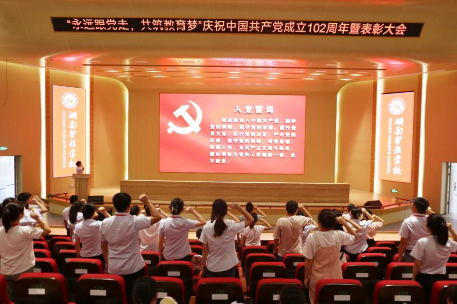 为隆重庆祝中国共产党成立102周年,歌颂党的光辉历程和丰功伟绩,鼓励先进、弘扬正气,激发广大教职工为实现新时代湘护教育工作新发展作出更大贡献,6月30日14点,必赢全体教职工欢聚于图书馆报告厅,举行庆祝中国共产党成立102周年暨表彰大会。校长丁志强,督学专家郭正良、彭宏伟、邓翠珍,副校长李荣辉、曹淑媛、梁辉平,工会主席王娟出席,党总支委员朱可蓉主持大会。