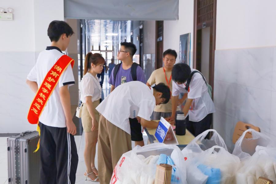 新生们依次前往各宿舍楼行李领取处领取行李并录制宿舍门锁指纹。