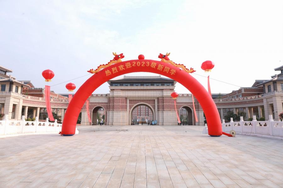 天高云淡,碧空万里,金桥广场上鲜艳的迎新拱门和氢气球,喜迎新同学的到来。