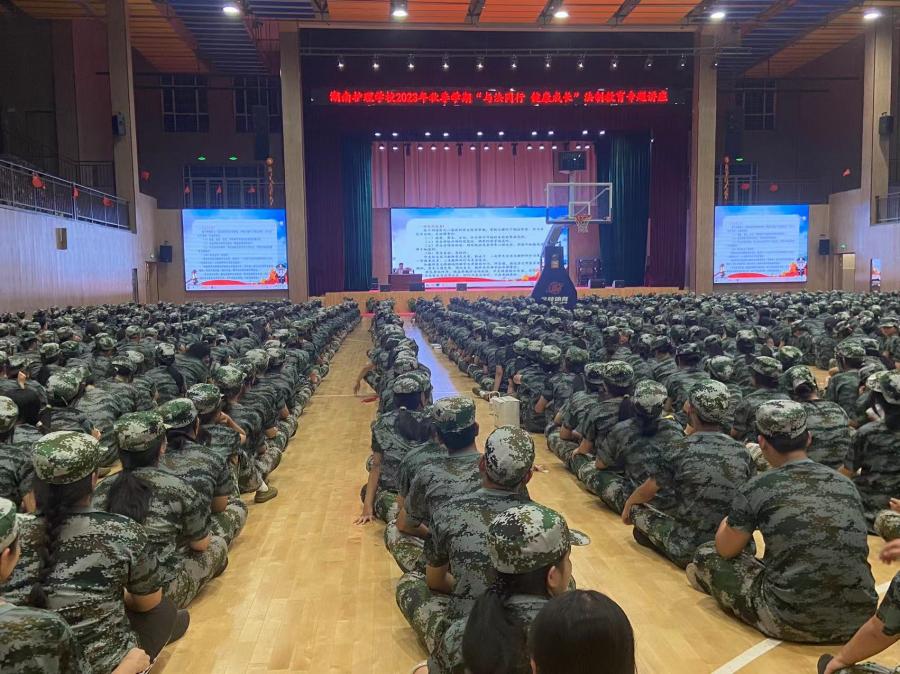 8月31日,必赢2023年秋季学期“与法同行 健康成长”——法制教育专题讲座在体育馆举行,执行校长梁辉平主讲,全体师生参加。