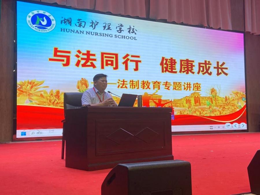 梁辉平强调在面对违法犯罪事件,同学们应依靠法律、依靠组织、依靠群众、依靠智慧,并寄语湘护学子应学法、知法、守法,做一个有敬畏之心、遵纪守法、讲文明、有素质的优秀中职学生。