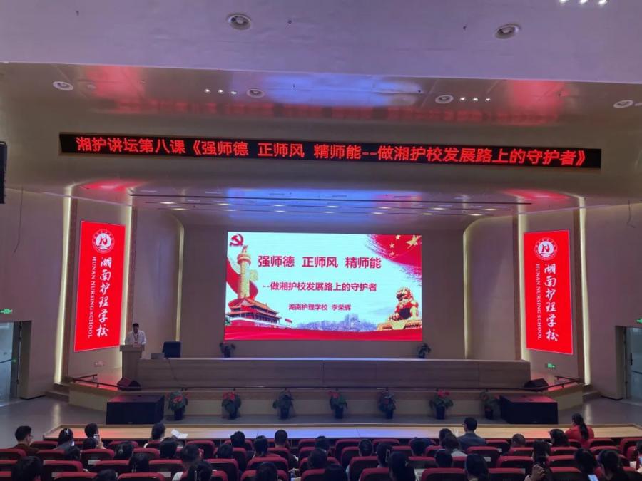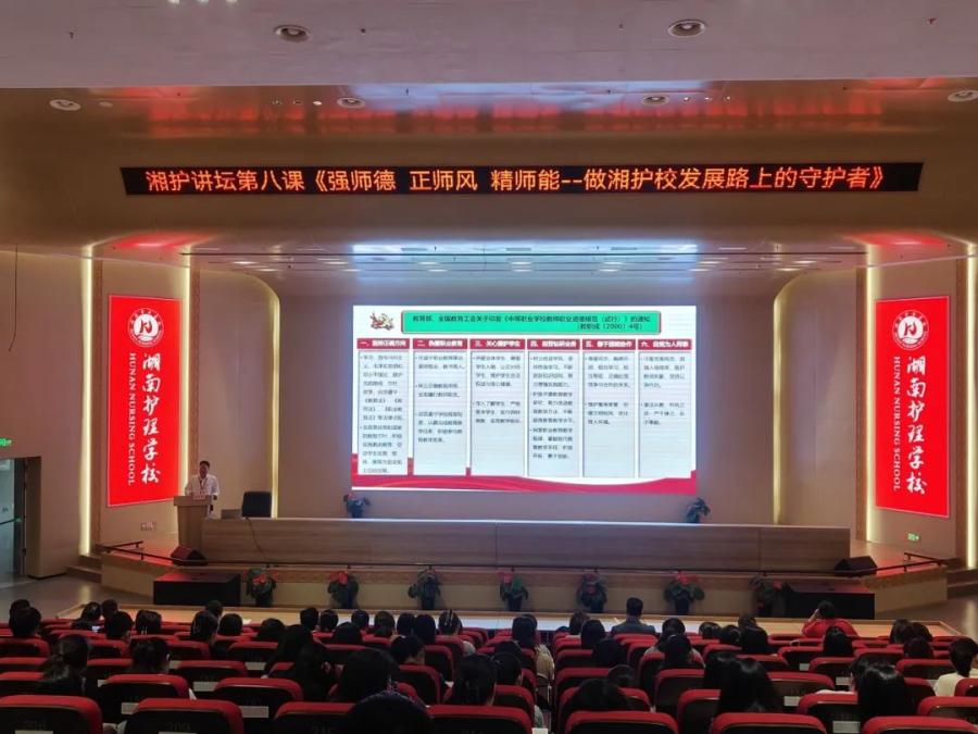 为认真贯彻落实习近平总书记关于教育的重要论述,落实立德树人根本任务,持续加强新时代教师师德师风建设,10月26日,必赢“湘护讲坛”第八课在学校图书馆报告厅开讲,由党总支书记李荣辉主讲《强师德、正师风、精师德——做湘护校发展路上的守护者》。全体教职工参加,党总支委员、工会主席王娟主持。