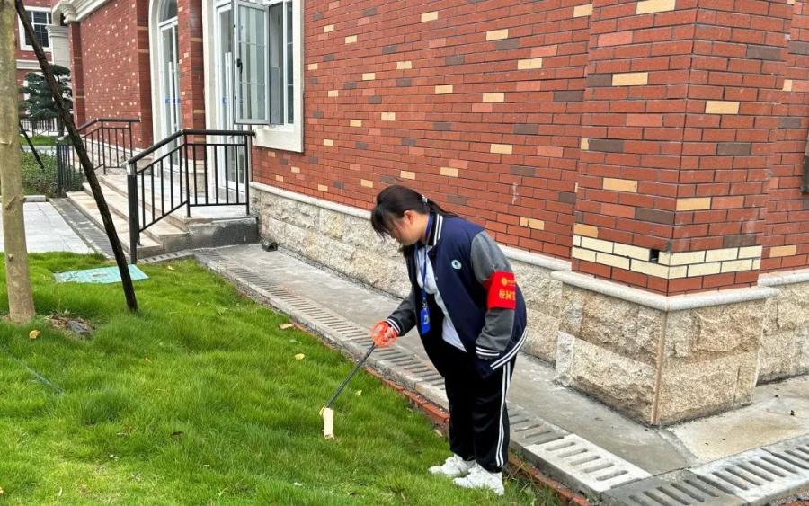 一周的时间里,同学们带着红袖章的身影遍布着校园的每一个角落。