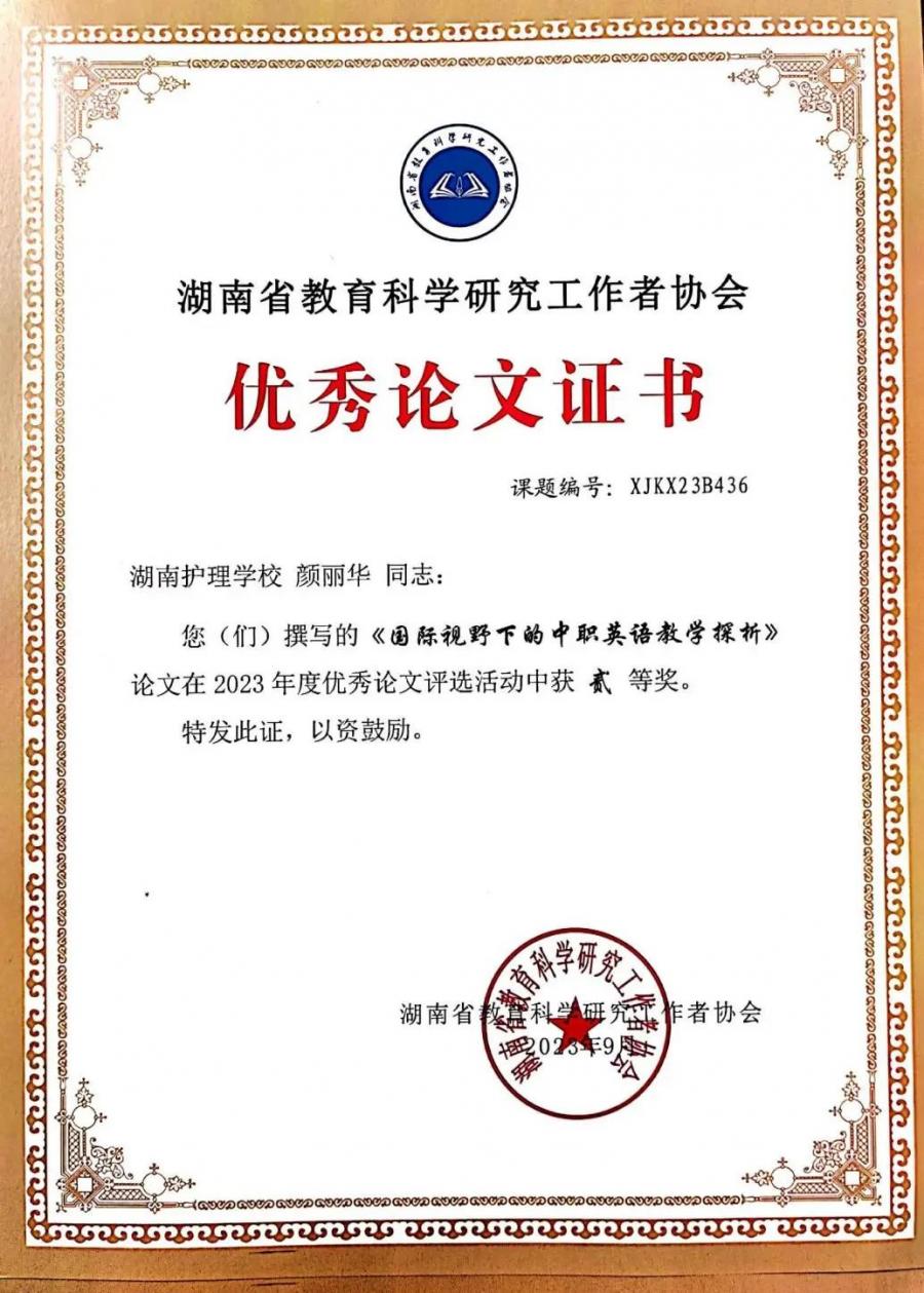 颜丽华老师所著《浅谈国际视野下的中职英语教学探析》一文在本次评选活动中获评二等奖。