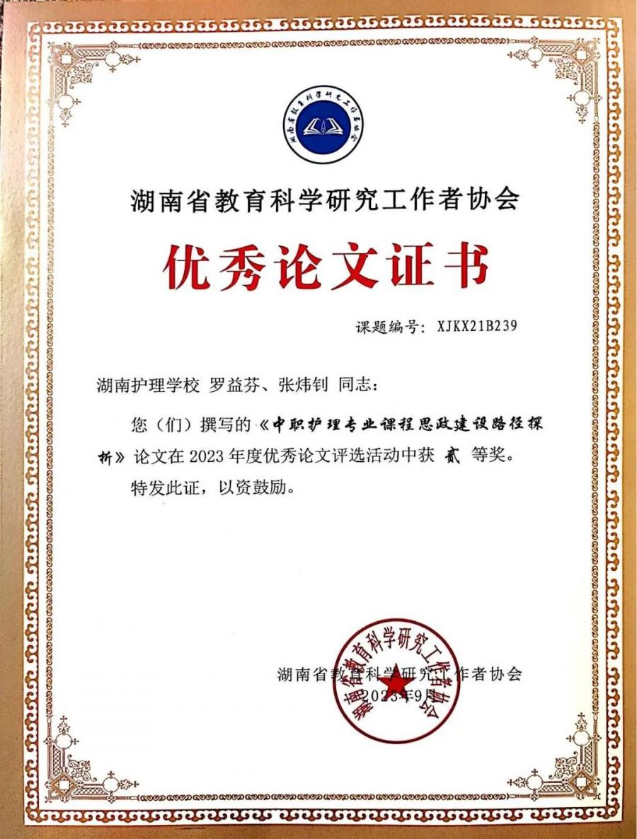 罗益芬老师所著《中职护理专业课程思政建设路径探析》一文在本次评选活动中获评二等奖。