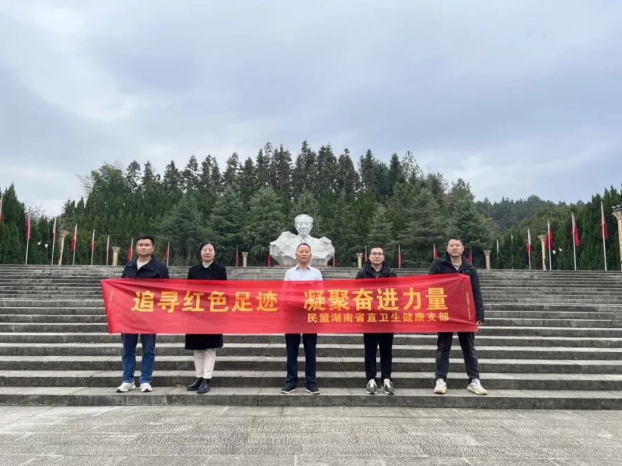 为进一步坚定党员理想信念,提高党性修养,增强责任担当,落实立德树人根本任务,2023年12月10日,必赢国际437官网党总支成功组织了“追寻红色足迹,凝聚奋进力量”主题党日活动。缅怀革命先烈,走进耀邦故里,了解党的革命历史,赓续红色精神血脉。本次活动特别邀请了民盟湖南省直卫生健康支部全体成员参加,学校理事长、民盟中央企业家联谊会副会长丁志强全程参加。