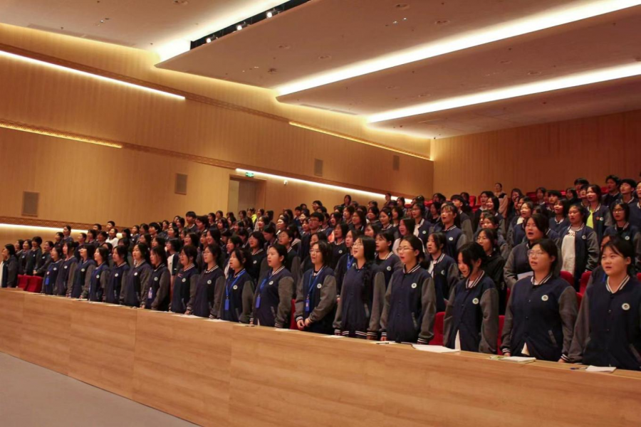 全场肃立,奏唱国歌,铿锵有力的国歌声在报告厅回荡。青年团校第二期开班仪式正式启幕。