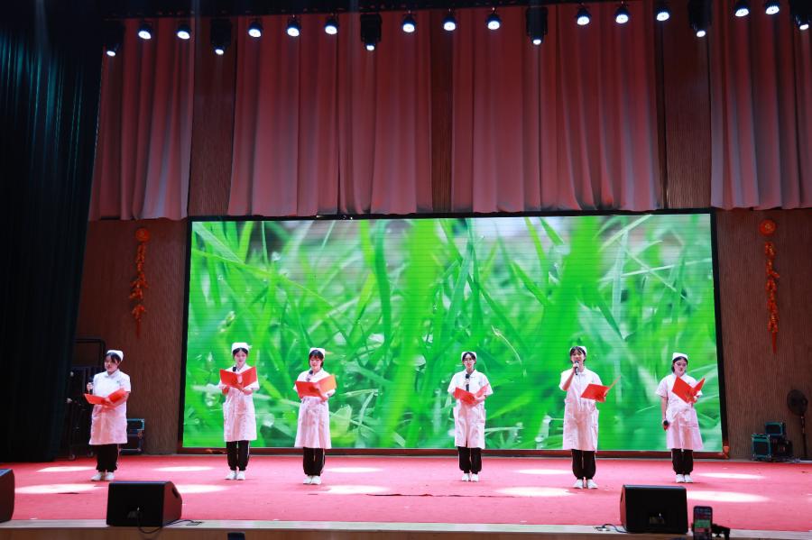 晚会在一曲《中国护士之歌》中拉开了序幕,展现了新时代中职学生朝气蓬勃的精神风貌和高雅风趣的艺术素养,伴随着悠扬的旋律和热烈的掌声,现场氛围达到了高潮。