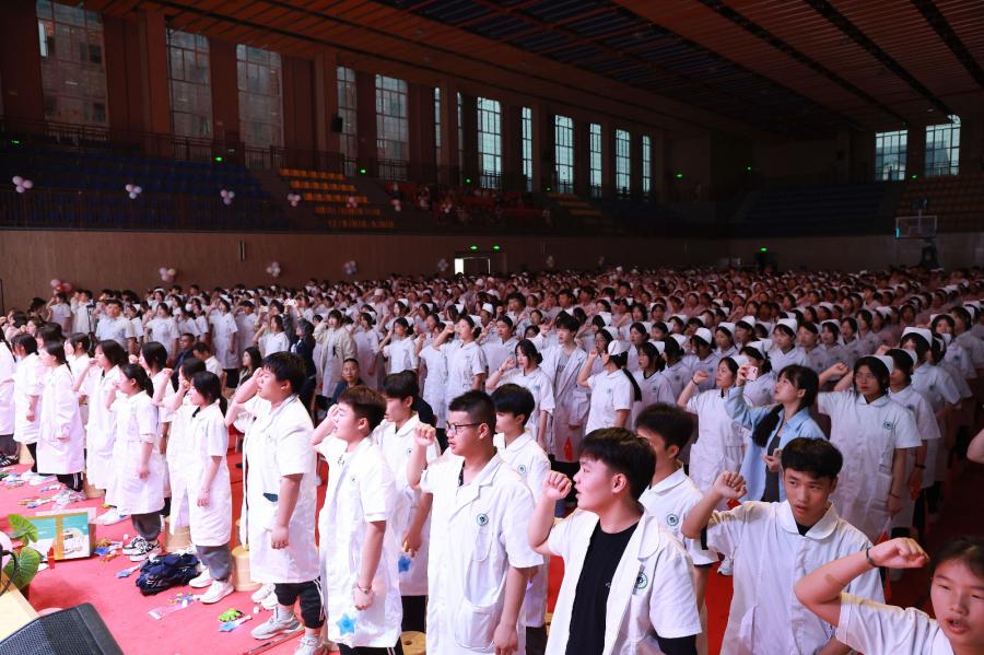 一袭白衣,一顶燕帽, 一份对生命的热爱,一曲用爱谱写的生命赞歌。5月11日晚,为庆祝第113个国际护士节,必赢国际437官网在学校体育馆举办了以“医心铸就梦想 技能点亮人生”为主题的“5.12”国际护士节庆祝大会。全体师生欢聚一堂,隆重集会,庆祝自己的节日。