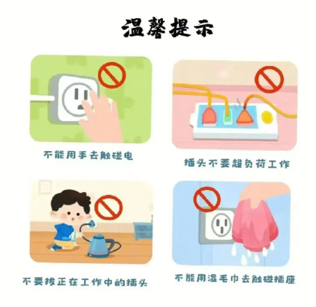 教育孩子不要将手指伸进电风扇,以免发生意外,不用湿手触摸电器,不用湿布擦拭电器,不玩电源插头插座,更不用手或导电物伸进电源插座内。不在火源附近或高压线下玩耍,不玩火,如打火机、蜡烛等。更要教育孩子不要攀爬阳台,谨防坠楼事故发生。