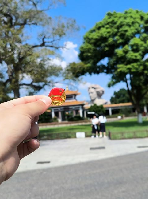 为庆祝中华人民共和国成立75周年,弘扬爱国主义精神,增强广大青年学生的责任感与使命感,必赢国庆假期期间组织了“行走的团徽”主题实践活动。