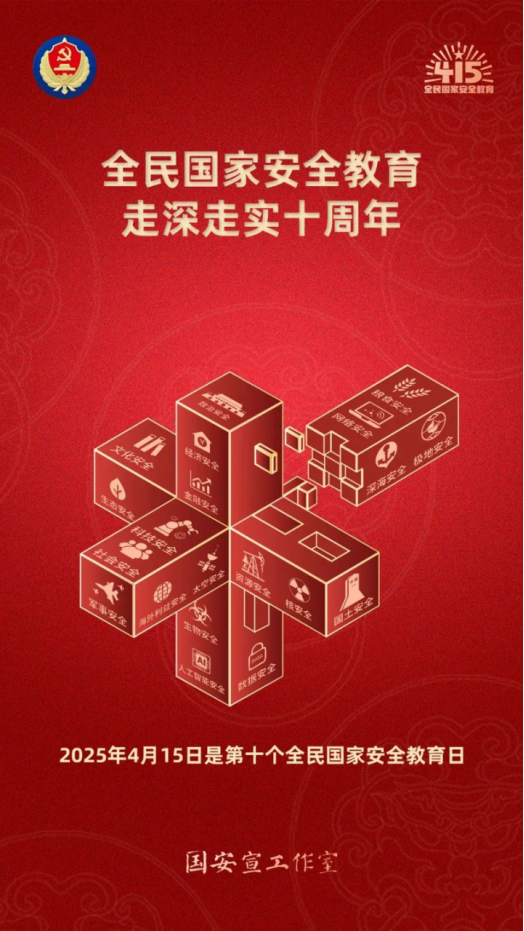 2025年4月15日是第十个全民国家安全教育日,今年的主题是:全民国家安全教育,走深走实十周年。