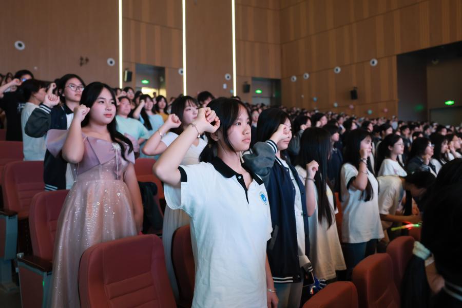 授帽仪式结束后,全体护理专业学生面向授帽台肃立,齐声庄严宣誓:“我志愿从事医卫事业,我们不忘今天的决心和誓言,接过前辈手中的蜡烛,燃烧自己,照亮他人,不辞艰辛,执着追求,为祖国医药卫生事业的发展和人类身心健康奋斗终生……”铿锵有力的誓言响彻会场,表达了青年护生坚定不移的职业信仰与使命担当。