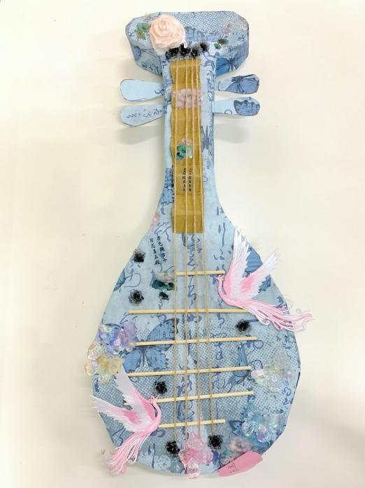 创意阐释:琵琶,起源于秦汉,绵延千载,音韵如诗,是中华传统乐器的代表之一。它承载着华夏文化的深厚底蕴,亦诉说着古人寄情于音的千年传承。本作品以琵琶为灵感,通过手工艺的方式还原古韵之形,希望当代青年在审美与创作中感知传统之美,让文化传承不止于历史,让非遗焕发青春光彩。