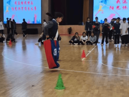 赛场上,袋鼠跳项目趣味横生,参赛同学套着布袋奋力跳跃,跌倒又迅速爬起继续冲刺。现场笑声与加油声交织,充分展现了同学们的运动热情与团队默契;
