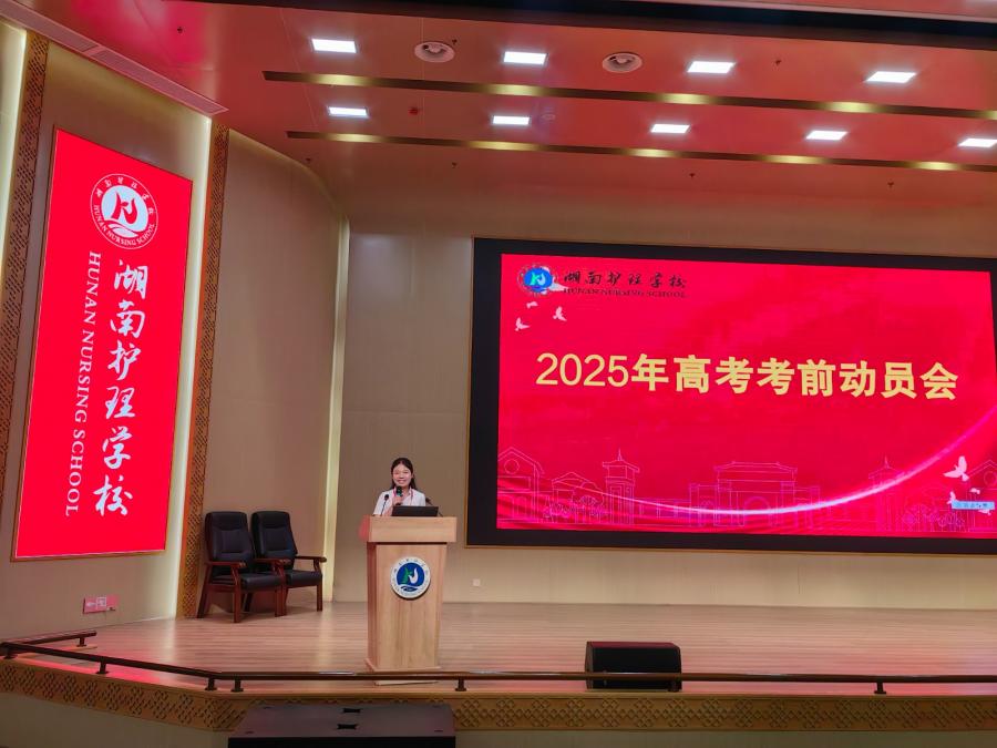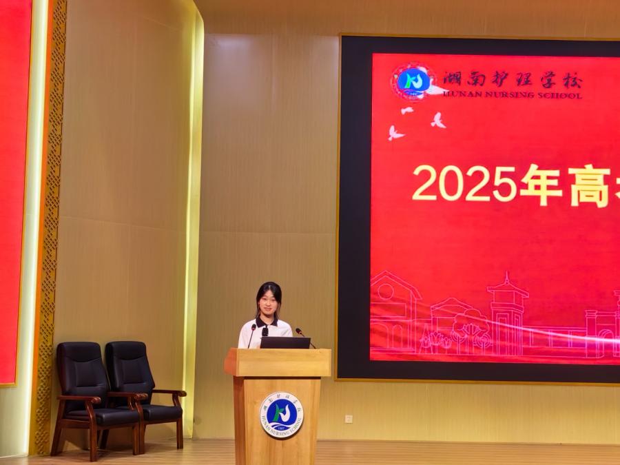 学生代表罗紫轩以《三载磨剑 今朝试锋》为主题发言,倡议同学们"把考场当课堂,以平常心创非凡绩"。