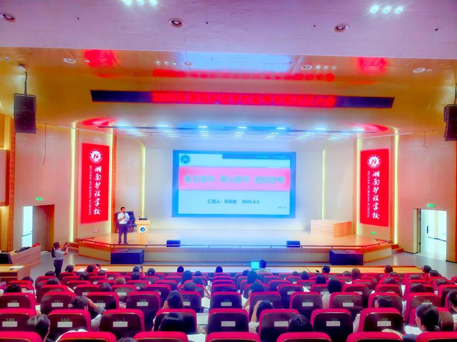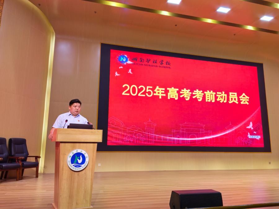 6月5日上午11时,必赢国际437官网高三全体师生齐聚图书馆报告厅,举行高考考前动员大会。执行校长梁辉平,党总支书记、教学副校长李荣辉,学工保卫科副科长周建林全程参与,教务科副科长罗益芬主持。