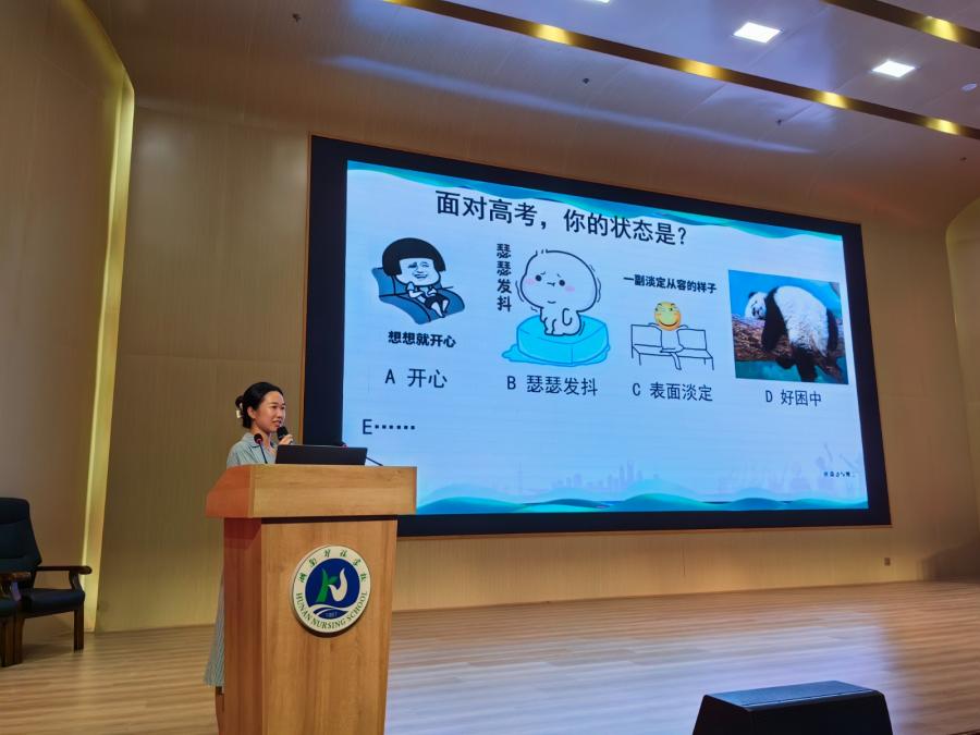 心理教师肖婷通过"深呼吸""肌肉放松"等互动游戏,科学疏导考前焦虑,强调"适度紧张有助于发挥最佳状态"。