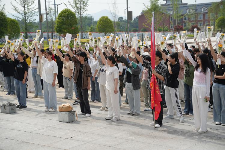 仪式伊始,校领导为高三考生送上象征美好寓意的向日葵。向日葵向阳而生,其花语代表着阳光与希望,校领导借此鼓励同学们以积极乐观的心态迎接高考挑战;接过鲜花的高三考生高举向日葵,现场气氛热烈,“一举夺魁”的祝福声此起彼伏。
