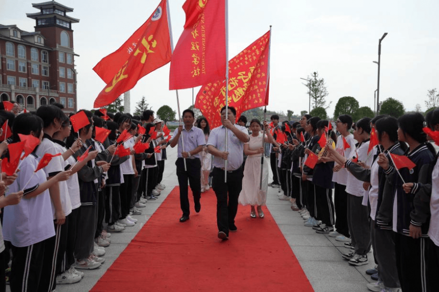 最后,出征鼓声擂响,高三考生在梁辉平校长、李荣辉书记的带领下,昂首阔步迈向送考车辆。道路两旁,全体师生挥舞着手中的彩旗,呐喊助威,一句句“旗开得胜”“高考加油”的祝福响彻校园,为即将踏上考场的学子们注入力量。